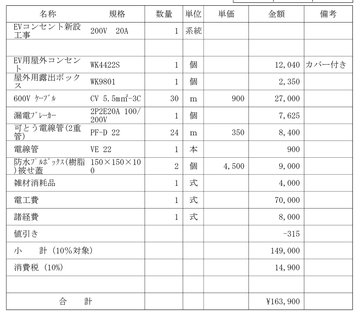 また、ケーブルを埋める作業があるため工賃も高くなり、さらに合計額も上がり、消費税が高くなるため総額が上がっています。