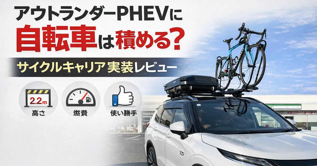 三菱 アウトランダーPHEVで自転車遠征したいと考えている方へ。 「ロードバイクは積める?」「キャリアって必要?」「実際使いやすい?」 この記事では、実際に 👉 サイクルキャリアを装着して使ってみたリ ...